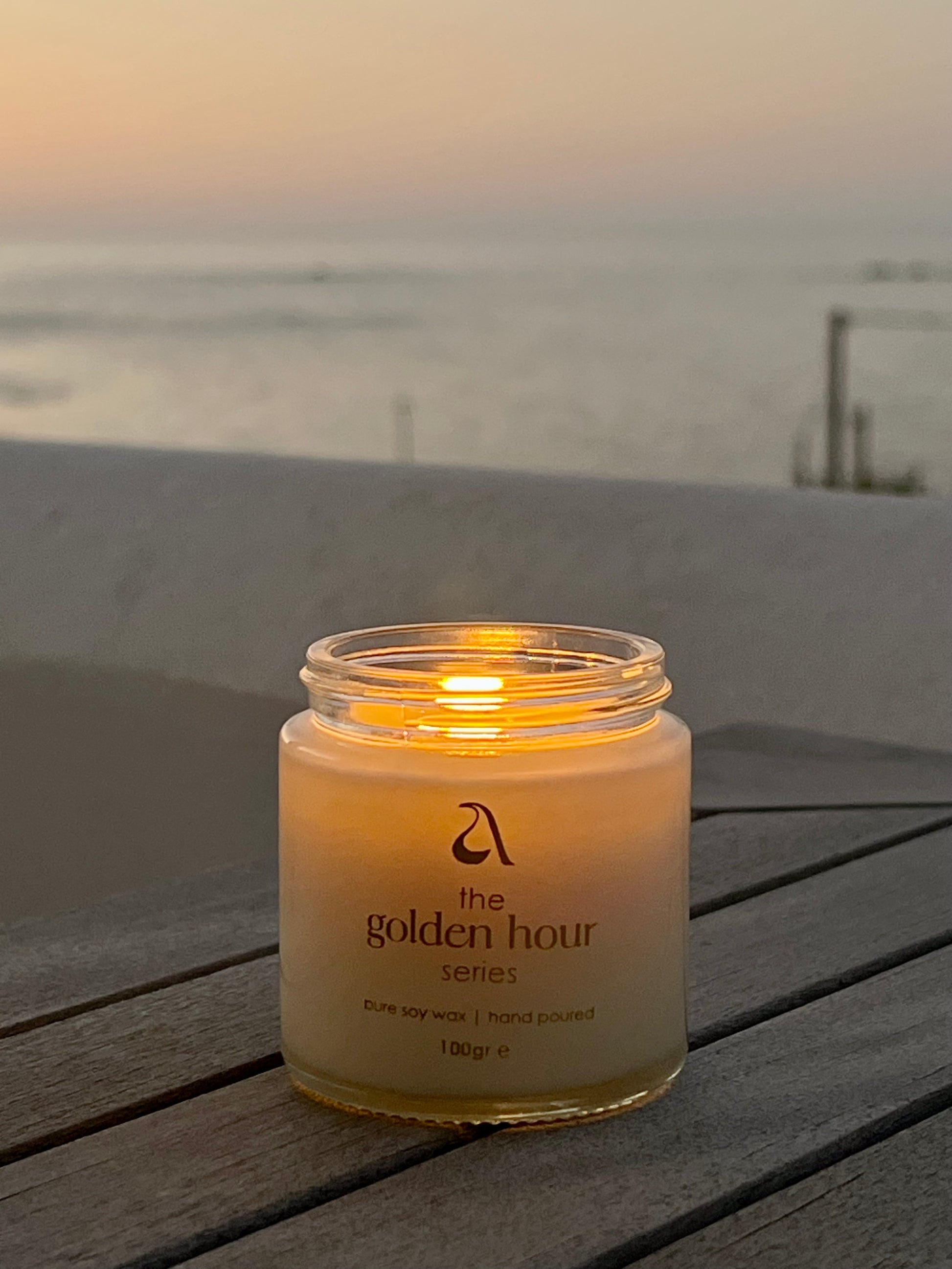 Hand-poured in small batches, our Golden Hour candles capture the fleeting beauty of sunset in a delicate glass jar. Made with 100% natural soy wax and eco-friendly fragrance oils, each candle is designed for a clean, long-lasting burn that fills your space with warmth and comfort.